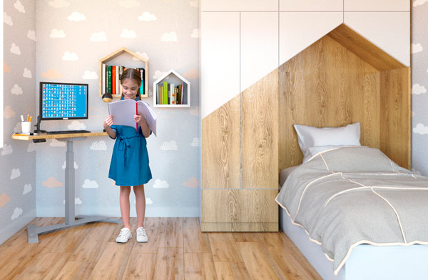 Ergonomic workspaces are just as important for children and students as for working adults, especially when they are learning part- or full-time from home. And while it can be challenging to fit a desk in a small space like a bedroom or dorm room, there are ergonomic sit-stand desks that can fit in an area as small as three by four feet.