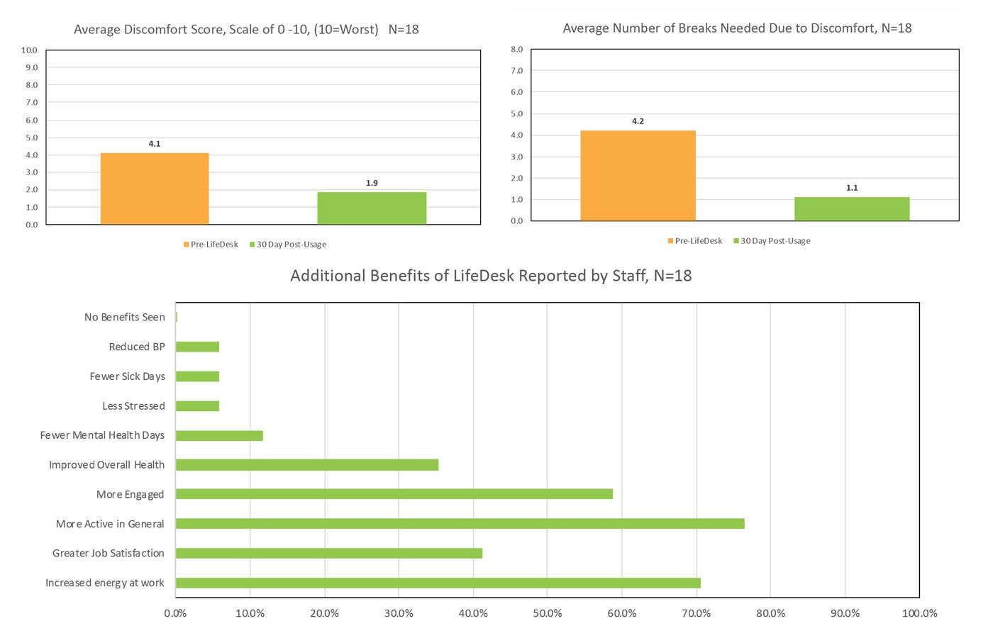 To help combat the problems of poor ergonomics, we've developed a new "Wellness While You Work" workstation powered by SmartLegs by LifeDesk. Every SmartLegs unit is equipped with built-in technology that allows your height-adjustable desk to be paired with software to ensure that users are in the proper sitting and standing postures and that they move frequently during the day. This minimizes the risk of getting those muscle aches and joint pains, but also maximizes the physiologic health benefits that a sit stand desk can provide.